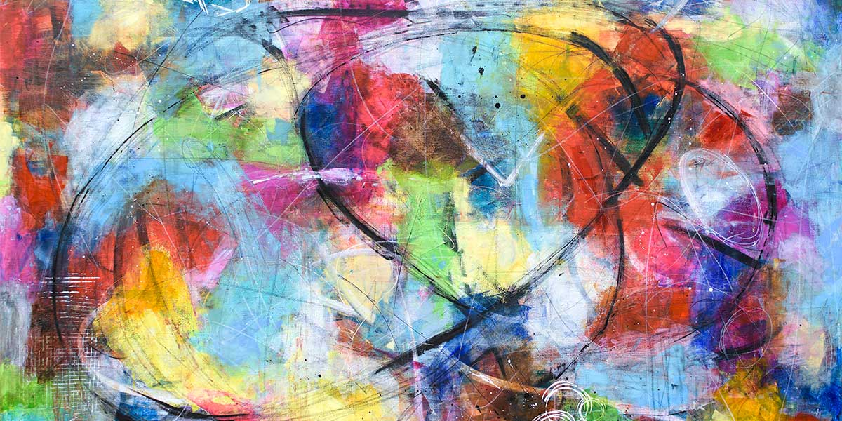 Abstrakt kunst lærredstryk i en farverig stil, hvor former og linjer skaber en levende og harmonisk sammensætning. De dynamiske penselstrøg og balancerede kompositioner giver værket en moderne udstråling, der fanger blikket og tilfører rummet karakter. Der er en fin sammenhæng mellem skarpe kanter og bløde overgange, hvilket skaber en interessant kontrast mellem struktur og bevægelse. Det abstrakte udtryk gør, at man hele tiden kan opdage nye detaljer og nuancer i motivet.