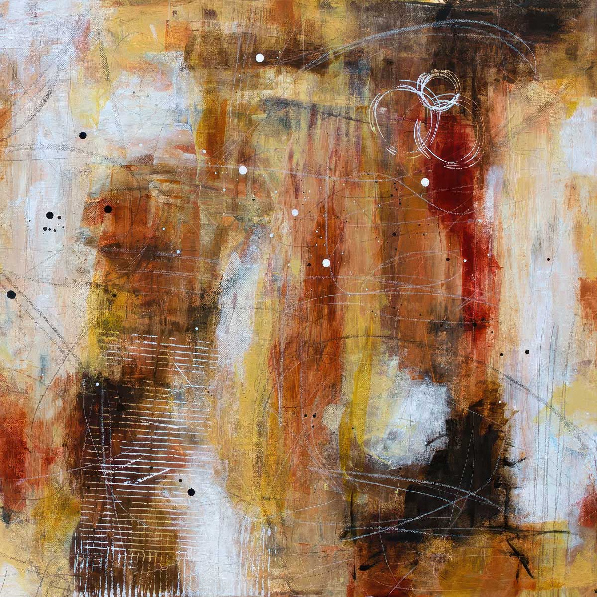 Motivet tager udgangspunkt i et originalt maleri skabt i atelieret. Lag på lag teknikken er central for udtrykket og giver værket dets dybde og strukturelle karakter.