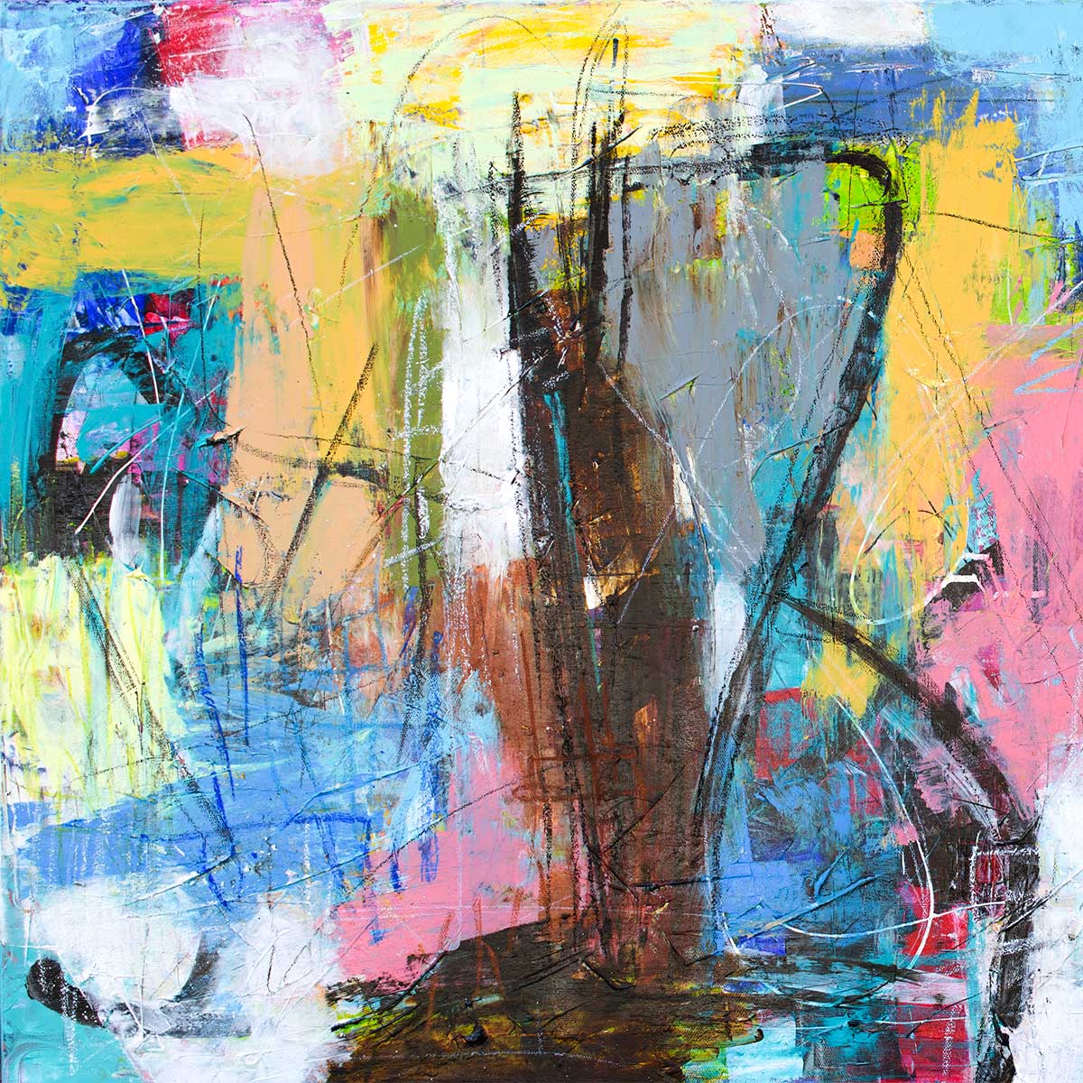 Motivet stammer fra et originalt maleri skabt i atelieret. Lag på lag teknikken giver de mange farvefelter dybde og gør tidligere farvelag synlige i overfladen.