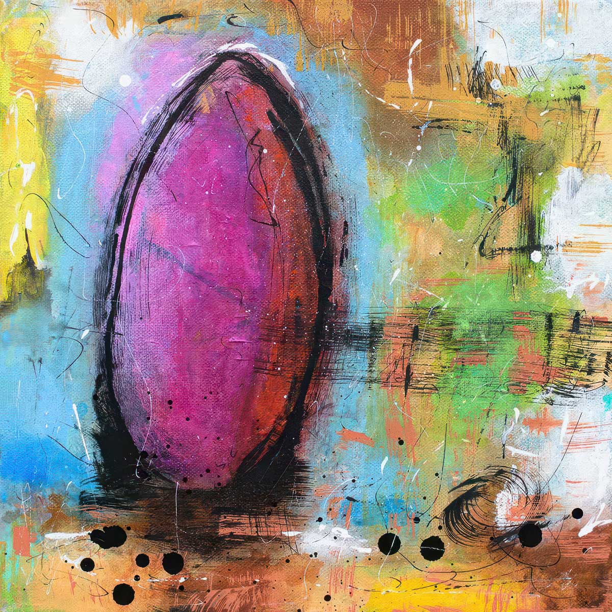 Motivet er gengivet fra et originalværk skabt i atelieret. Pouring teknik danner de naturlige overgange og de karakteristiske møder mellem farverne.