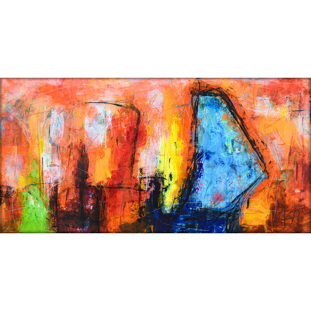 Det kunstneriske udtryk er skabt gennem en omhyggelig lag på lag proces, hvor hvert lag tilføjer struktur, dybde og bevægelse. Denne metode giver billedet sin særlige tekstur og intensitet, hvor farverne smelter sammen og samtidig står tydeligt frem. Resultatet er et unikt udtryk, hvor spontanitet og præcision forenes i et moderne, energisk formsprog.