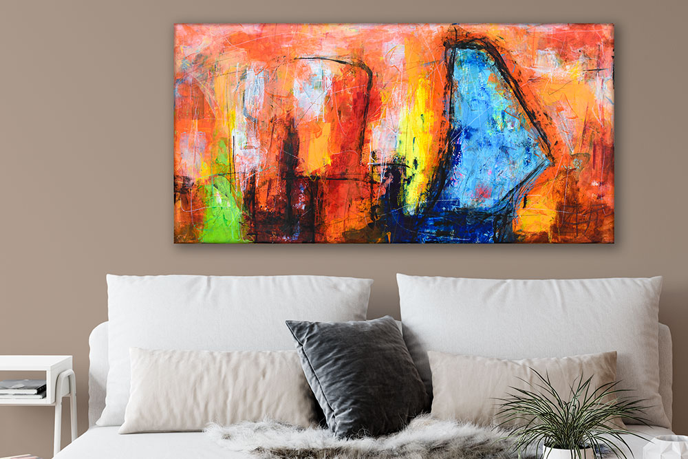 Kæmpe lærredsbillede er et markant og iøjnefaldende kunstværk, der skaber liv og energi i ethvert rum. Motivet er udført i en farverig og ekspressiv stil, hvor bevægelse og intensitet går hånd i hånd. Det store format giver plads til detaljer og dybde, og værkets intense udtryk gør det til et centralt blikfang i stuen, kontoret eller galleriet.