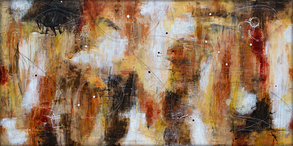 Farvepaletten i værket fremstår harmonisk, men samtidig kraftfuld. Brune og sandfarvede nuancer danner grundtonen, og disse jordnære farver giver værket en rolig og naturlig stemning. De suppleres af kontrastfulde overgange, hvor toner glider flydende sammen eller står i skarpt modspil, hvilket tilfører dybde og intensitet. Samspillet mellem kontraster og bløde overgange gør værket alsidigt og velegnet til forskellige typer rum, uanset om det skal skabe varme i en moderne indretning eller tilføre karakter til et klassisk interiør.