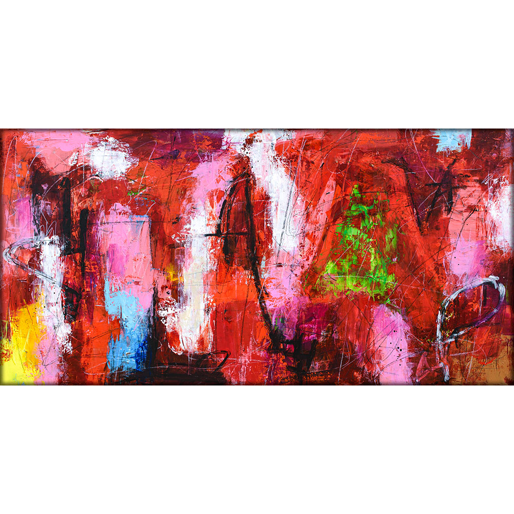 Farvepaletten er domineret af røde nuancer, som bringer varme, styrke og passion ind i kompositionen. De understøttes af grønne, gule, brune og blå farver, der skaber balance og variation. De skarpe kontraster fremhæver værkets energi, mens de flydende farveovergange tilfører blødhed og dybde. Helheden fremstår som en visuel oplevelse i konstant bevægelse – et kunstværk, der ændrer karakter med lyset.