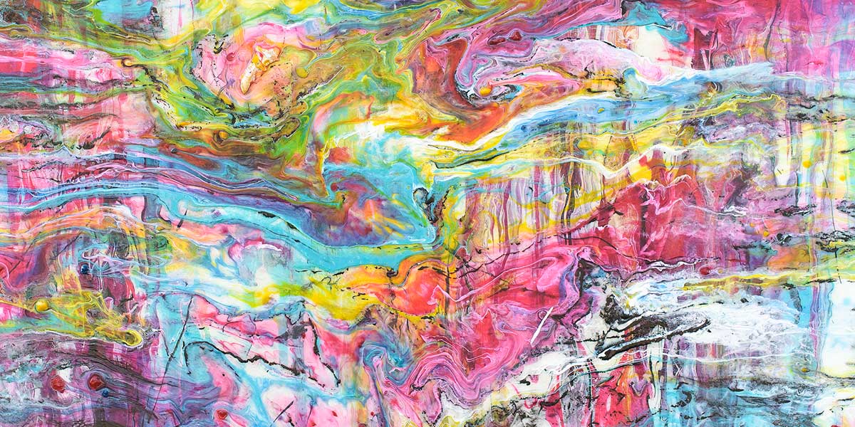 Motivet er baseret på et originalt maleri skabt i atelieret og gengivet som plakat. Pouring teknikken giver de bløde farveovergange og naturlige strukturer, som præger udtrykket.