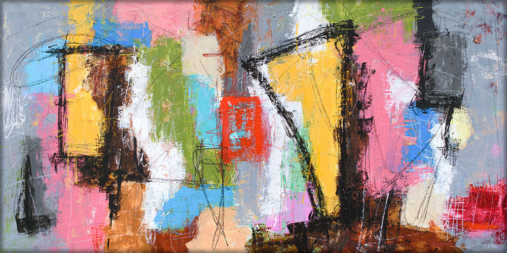 Stort maleri med kunst i en tidsaktuel stil, der kombinerer både dynamik og finesse. Kompositionen er opbygget af fine, faste linjer, der skaber struktur, og brudte linjer, som tilfører værket en organisk og levende karakter. De velafbalancerede former giver en følelse af rytme og bevægelse, hvilket gør maleriet til et markant visuelt fokuspunkt. Det er et kunstværk, der både kan stå alene og indgå i en større indretningshelhed.